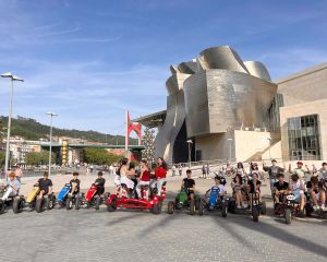 El primer dia, un cop arribats a Bilbao, es va instal·lar al hostel i, tot seguit, van començar a conèixer la ciutat… sobre rodes! Va fer una ruta en bicicleta, karts i party bike descobrint alguns dels punts més emblemàtics, com el Guggenheim, San Mamés, la grua Carola, entre d’altres. Una manera original i divertida de prendre el primer contacte amb aquesta capital basca.