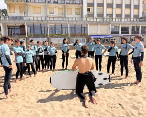 El segon dia, l’alumnat va fer una excursió a Gernika-Lumo, on va gaudir d’una visita guiada que va ajudar a entendre millor la importància històrica i simbòlica d’aquest indret. També va tenir l’oportunitat de conèixer una part de la seva cultura practicant pilota basca, un esport molt arrelat al País Basc. A la tarda, es va desplaçar fins a Deba, on els esperava una divertida sessió de surf a la platja. Tot i les caigudes, l’activitat va ser tot un èxit!